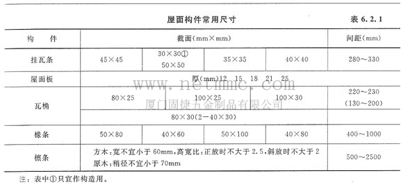10. 屋面構(gòu)件的截面和間距宜按表6.2.1中所列的常用尺寸選擇。