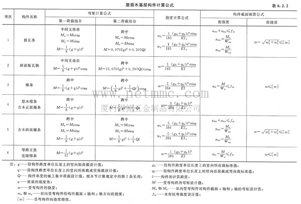 屋面構(gòu)件計算公式列于表6.2.2。