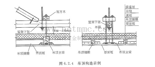 (4) 設(shè)有保溫層的吊頂,保溫材料與下弦之間應(yīng)保持100~150mm的凈距。