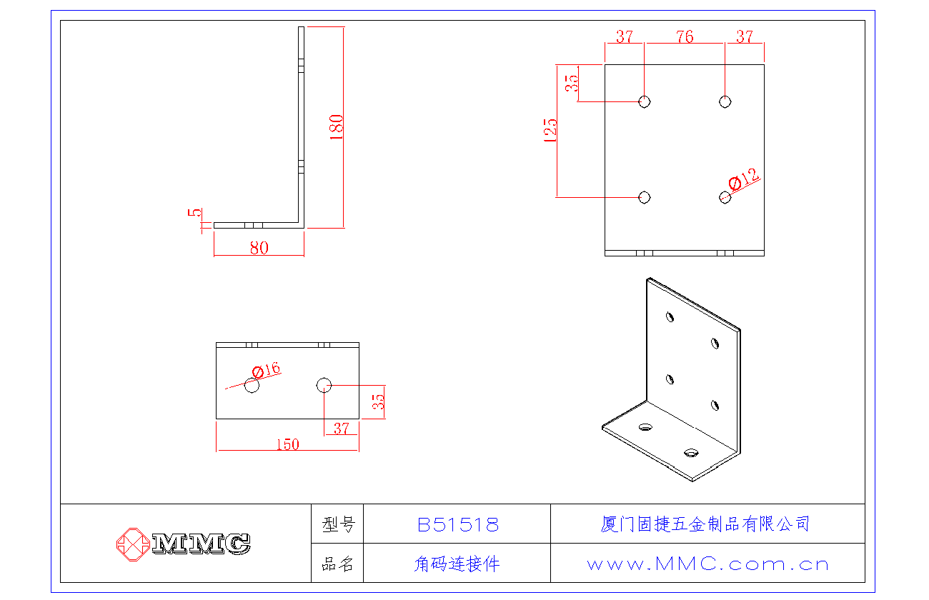 B51518 重型角碼-角碼連接件-加厚型角碼