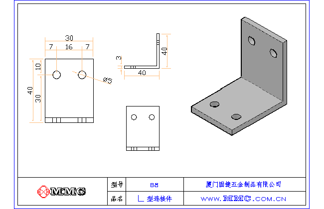 MMC固捷L型連接件,此款角鐵的兩面一樣均有兩個5mm小孔,此產(chǎn)品大量應(yīng)用于各種木棧道、木平臺等項目,亦可用于各種家具上。