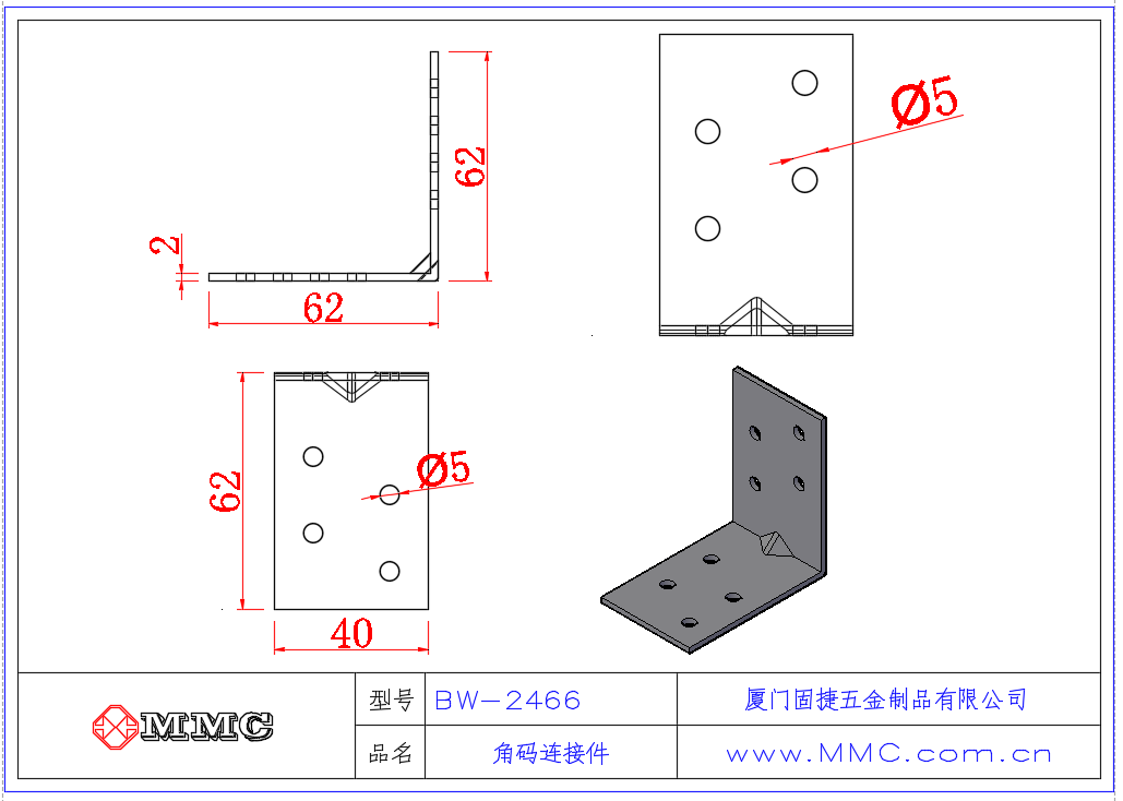 角碼連接件,孔的數(shù)量可以按客戶要求增加或減少(在孔位不變的情況下)。