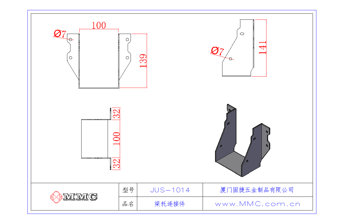 JUS-1014 梁托-U型掛件-木結(jié)構(gòu)別墅金屬配件
