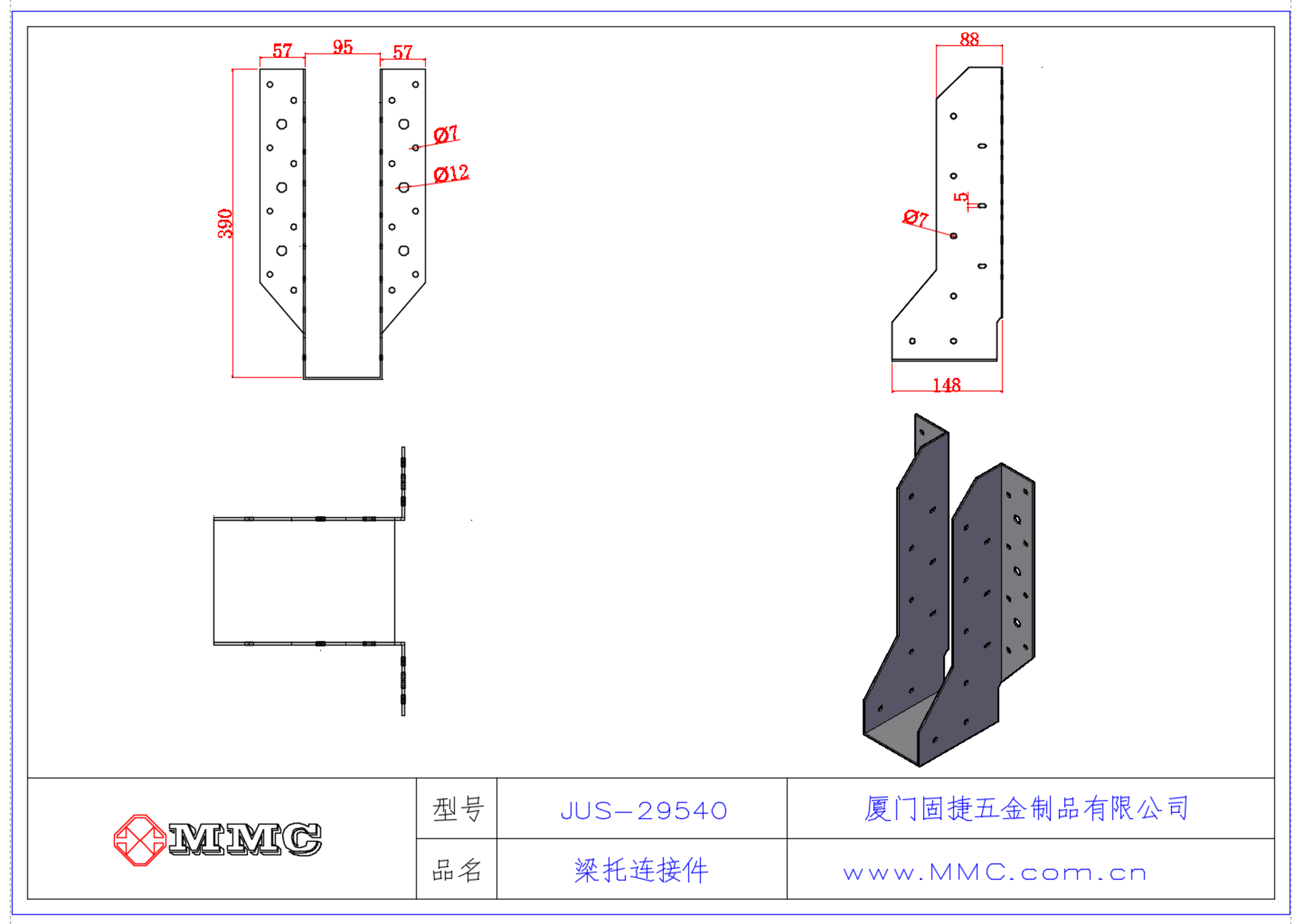 JUS-29540 梁托連接件-U型掛件-木屋配件