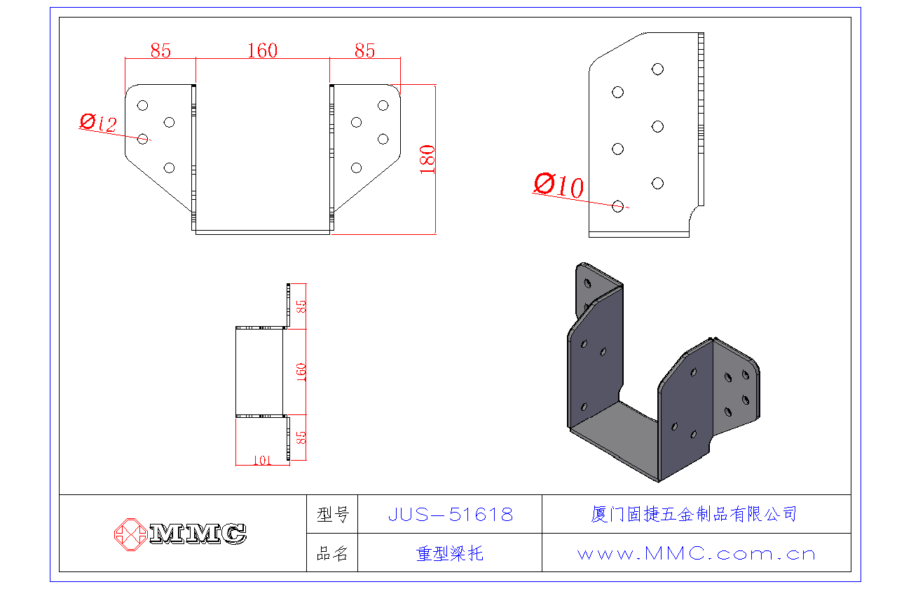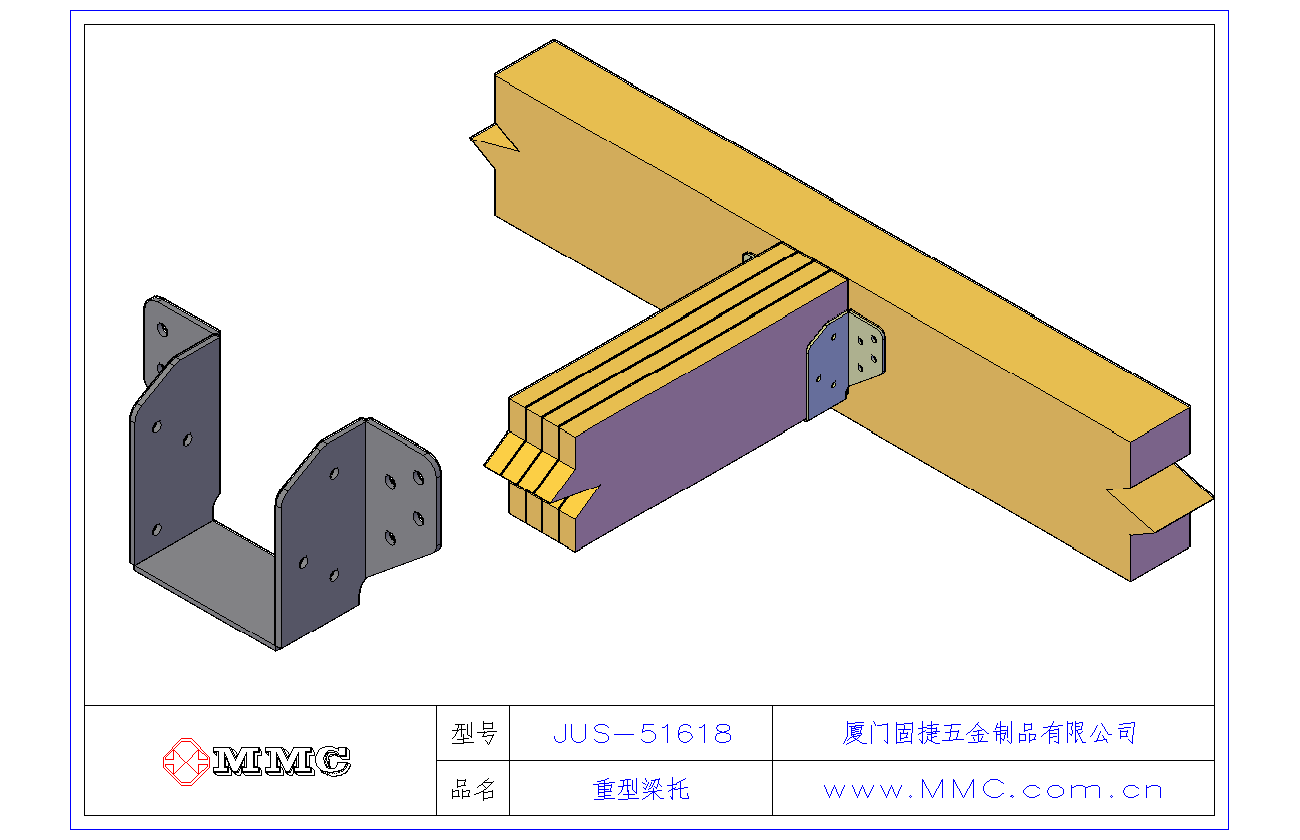 重型梁托,適用于寬度160的木梁或多片板材的組合梁與主梁或墻壁的連接