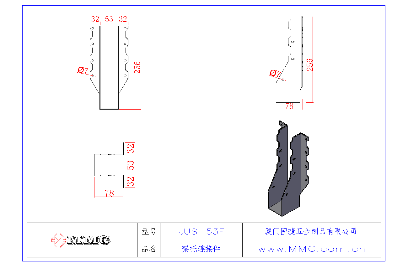 JUS-53F 梁托-U型掛件-龍骨與橫梁水平連接件-木結(jié)構(gòu)別墅金屬配件
