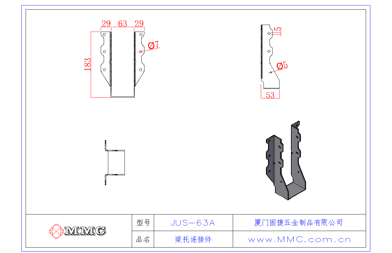 JUS-63A 梁托-U型掛件-龍骨與橫梁水平連接件-木結(jié)構(gòu)別墅金屬配件