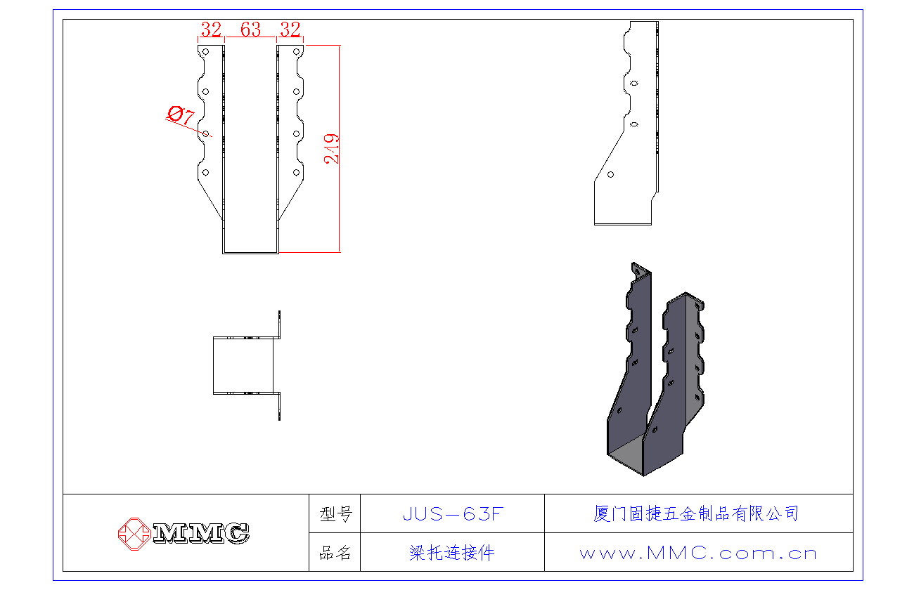 JUS-63F 梁托連接件-U型掛件-木屋配件