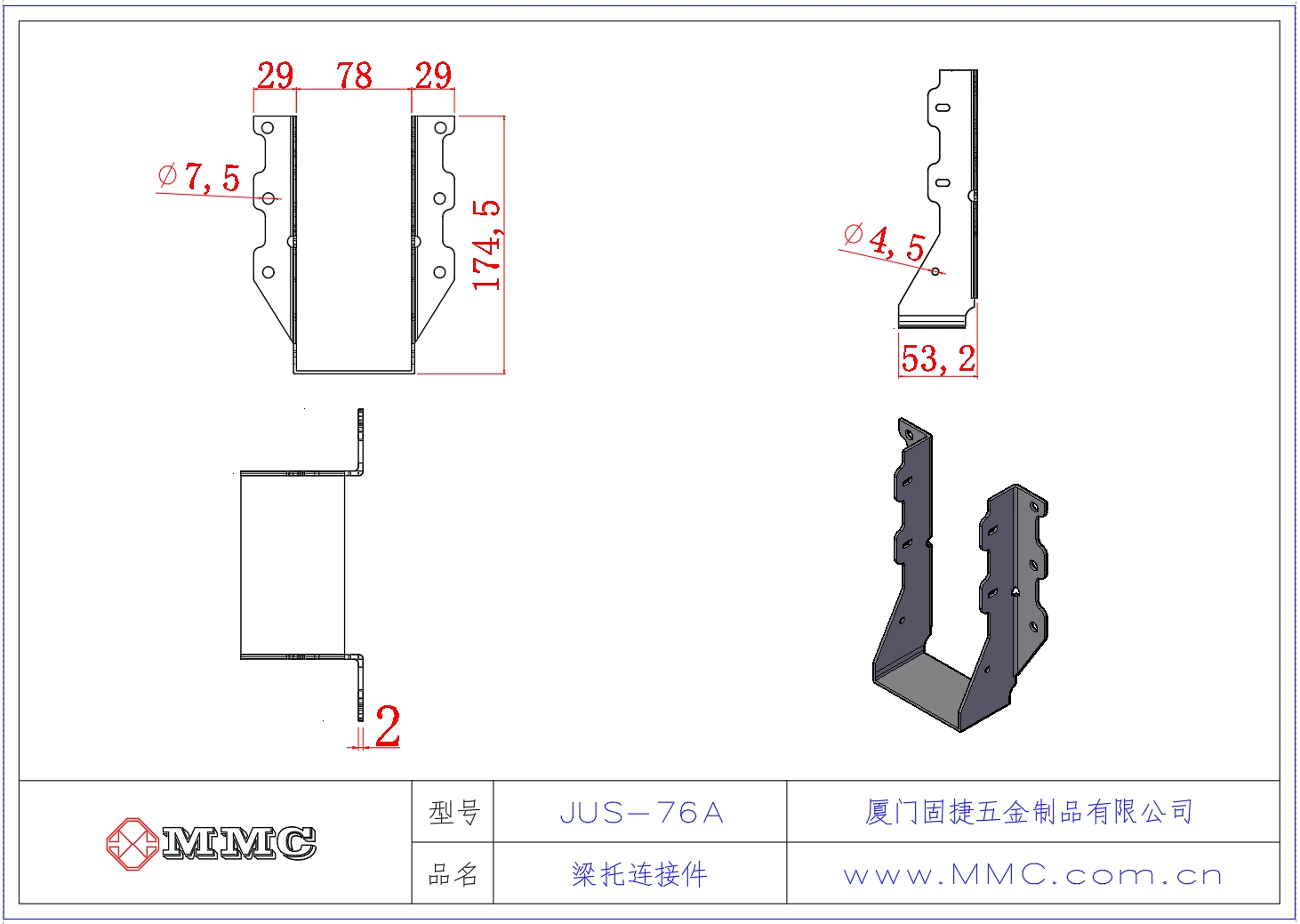 JUS-76A 梁托連接件-U型掛件-木屋配件