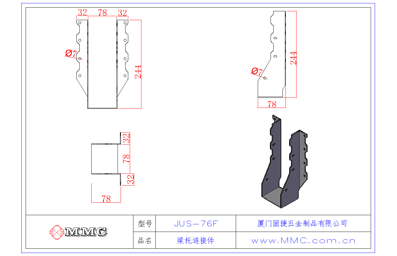 JUS-76F 梁托-U型掛件-木結構別墅金屬配件