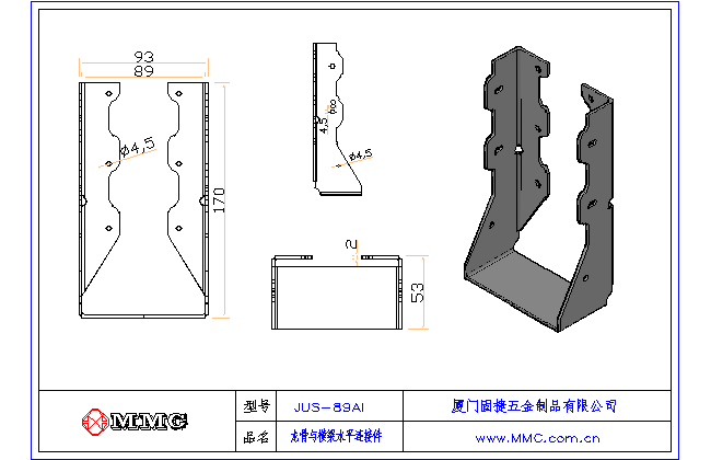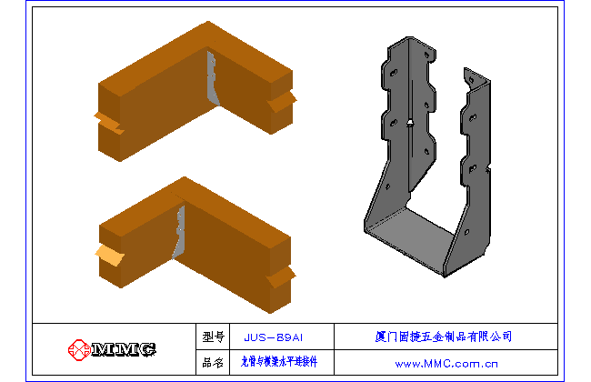 MMC連接件系列,可用于厚度為89mm的龍骨與橫梁間的水平連接。