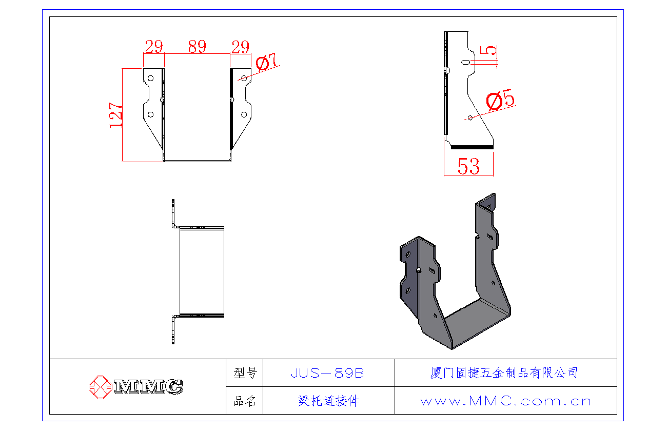 JUS-89B 梁托連接件-U型掛件-木屋配件