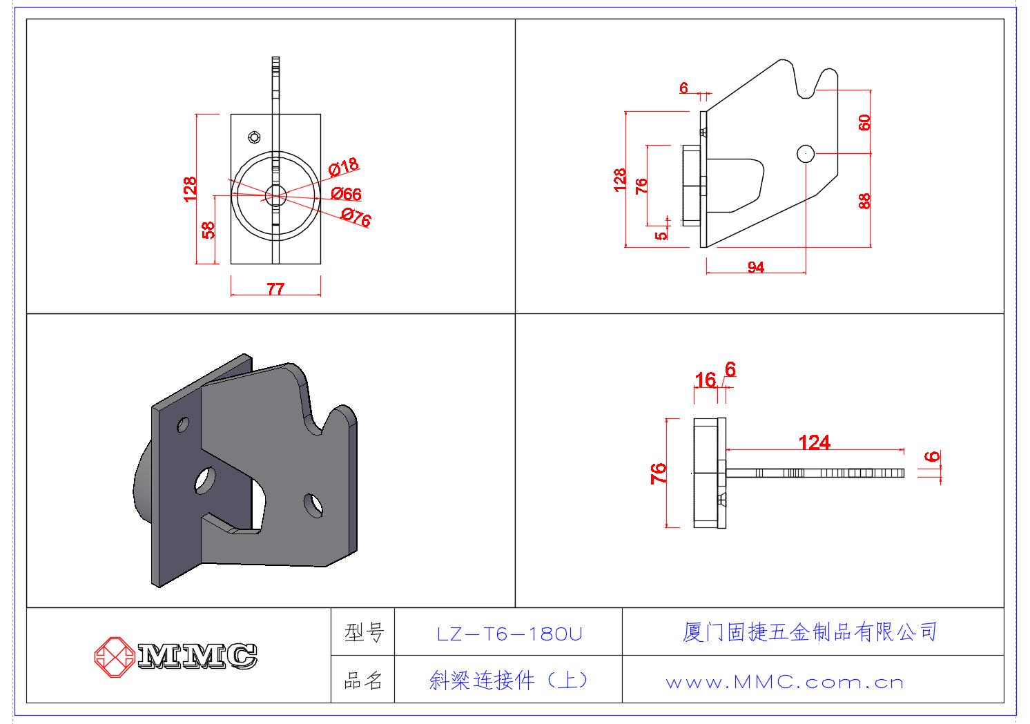 LZ-T6-180U 梁柱連接件-日式連接件-隱藏式T型連接件