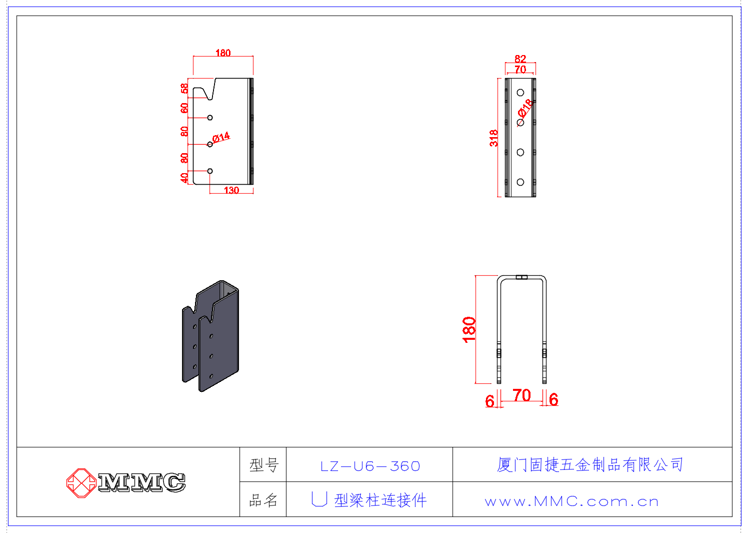 LZ-U6-360 梁柱連接件-日式連接件-隱藏式U型連接件