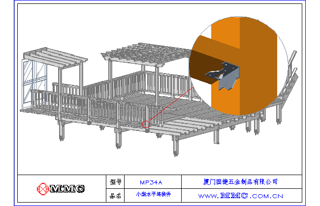 MMC連接件系列,水平連接龍骨與橫梁,應(yīng)用范圍:各種欄桿、扶手、小型花架等