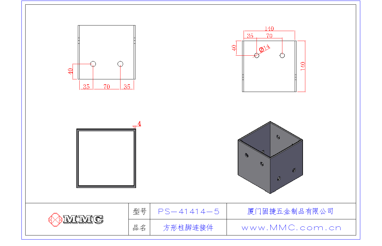 PS-41414-5_柱腳連接件-立柱連接件-方形立柱連接件-柱靴 PS-41414-5_柱腳連接件-立柱連接件-方形立柱連接件-柱靴