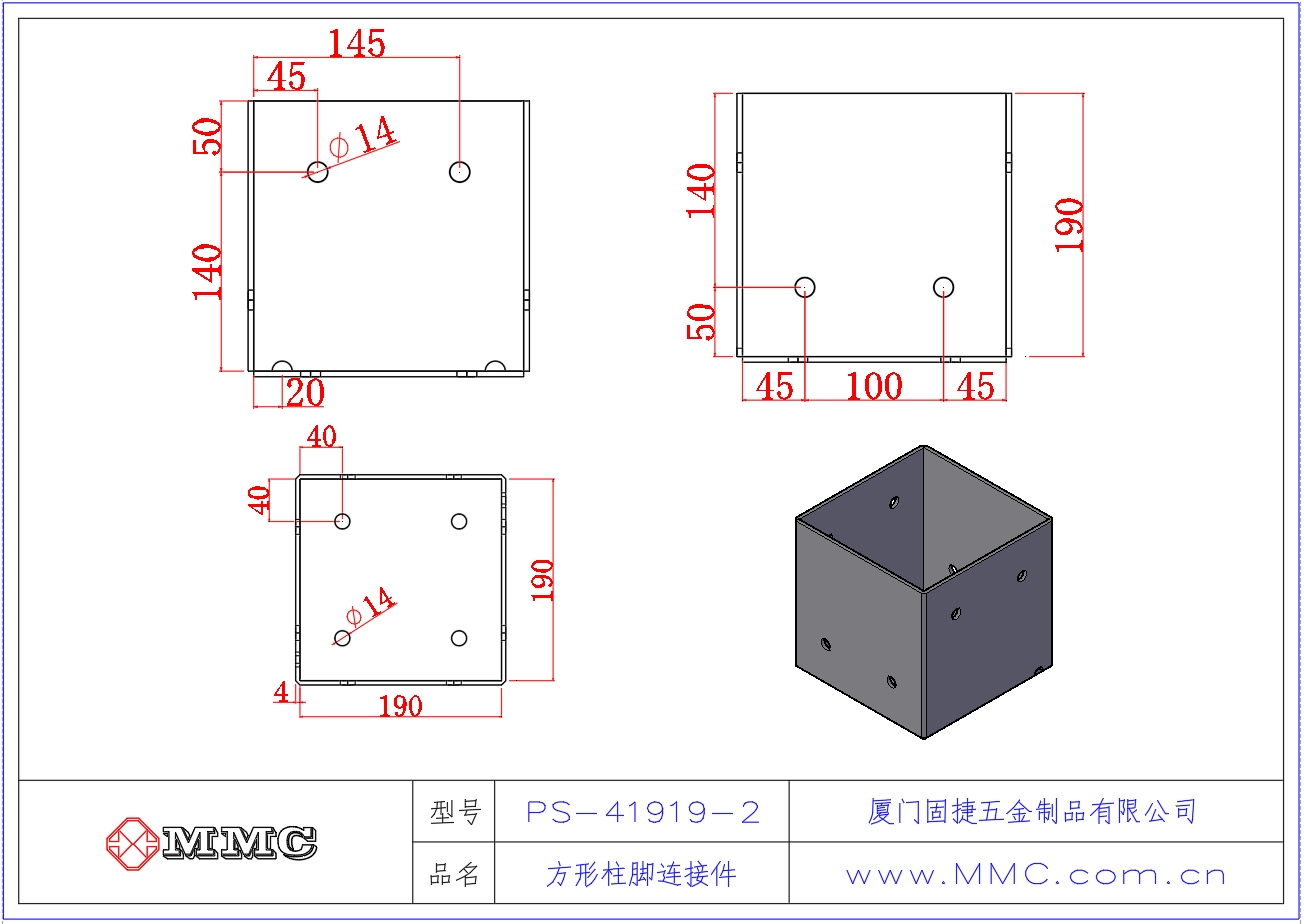 PS-41919-2_柱腳連接件-立柱連接件-方形立柱連接件-柱靴 PS-41919-2_柱腳連接件-立柱連接件-方形立柱連接件-柱靴