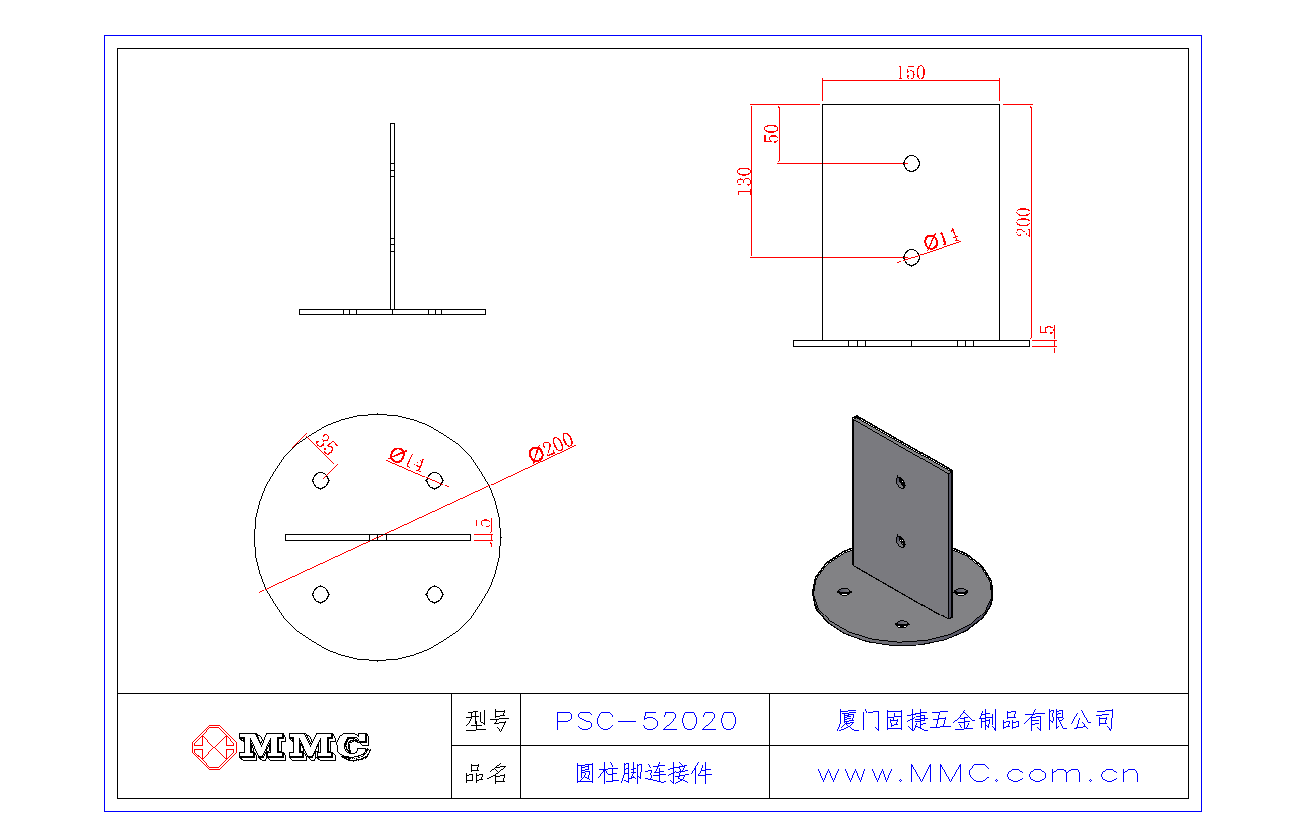 PSC-52020 T型柱腳連接件-T型角碼連接件-T形