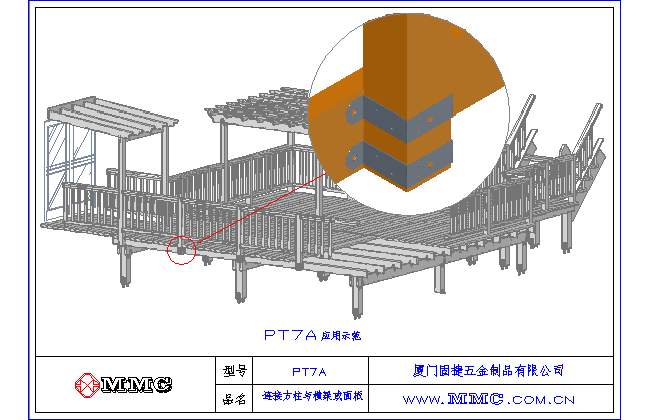 PT7A 欄桿連接件-連接方柱與橫梁或面板