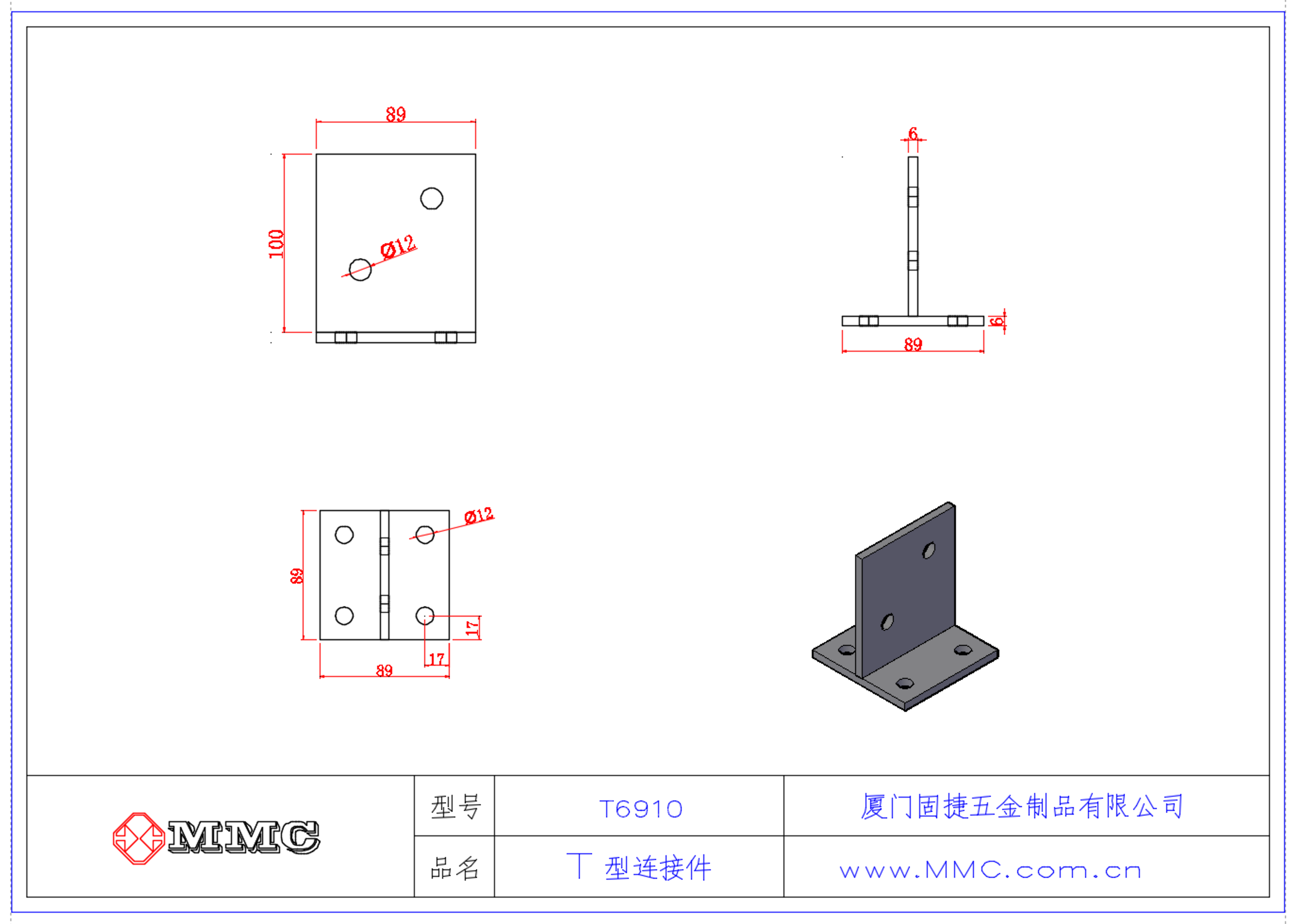 T6910 T型柱腳連接件-T型角碼連接件-T形