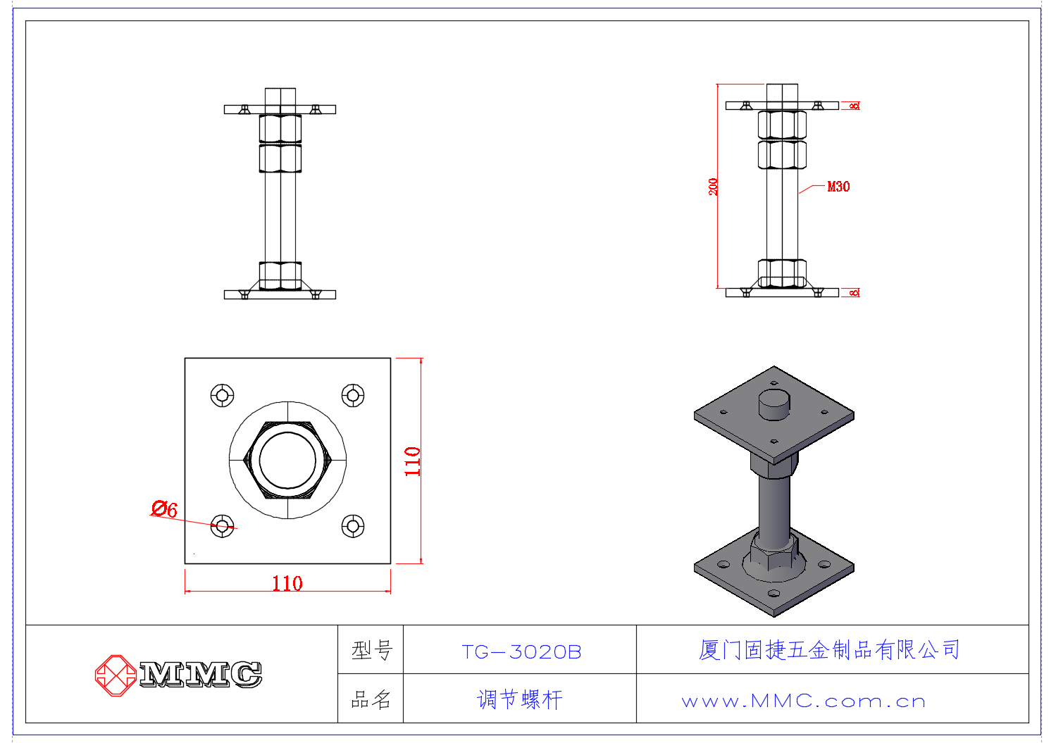 TG-3020B 升降螺桿-調(diào)節(jié)螺桿-調(diào)節(jié)螺栓-伸縮螺桿-木屋連接件