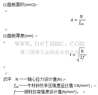 11.圓鋼拉桿和拉力螺栓的直徑,應(yīng)按計算確定,但不宜小于12mmo 圓鋼拉桿和拉力螺栓的方形鋼墊板尺寸,可按下列公式計算: